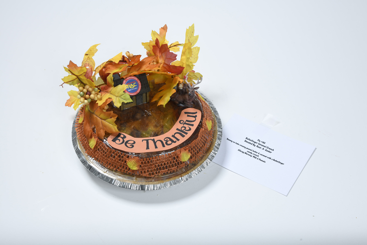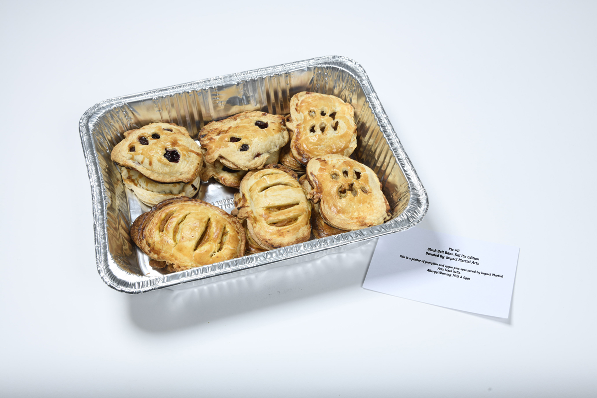 This is a platter of pumpkin and apple pies sponsored by Impact Martial Arts black belts.
